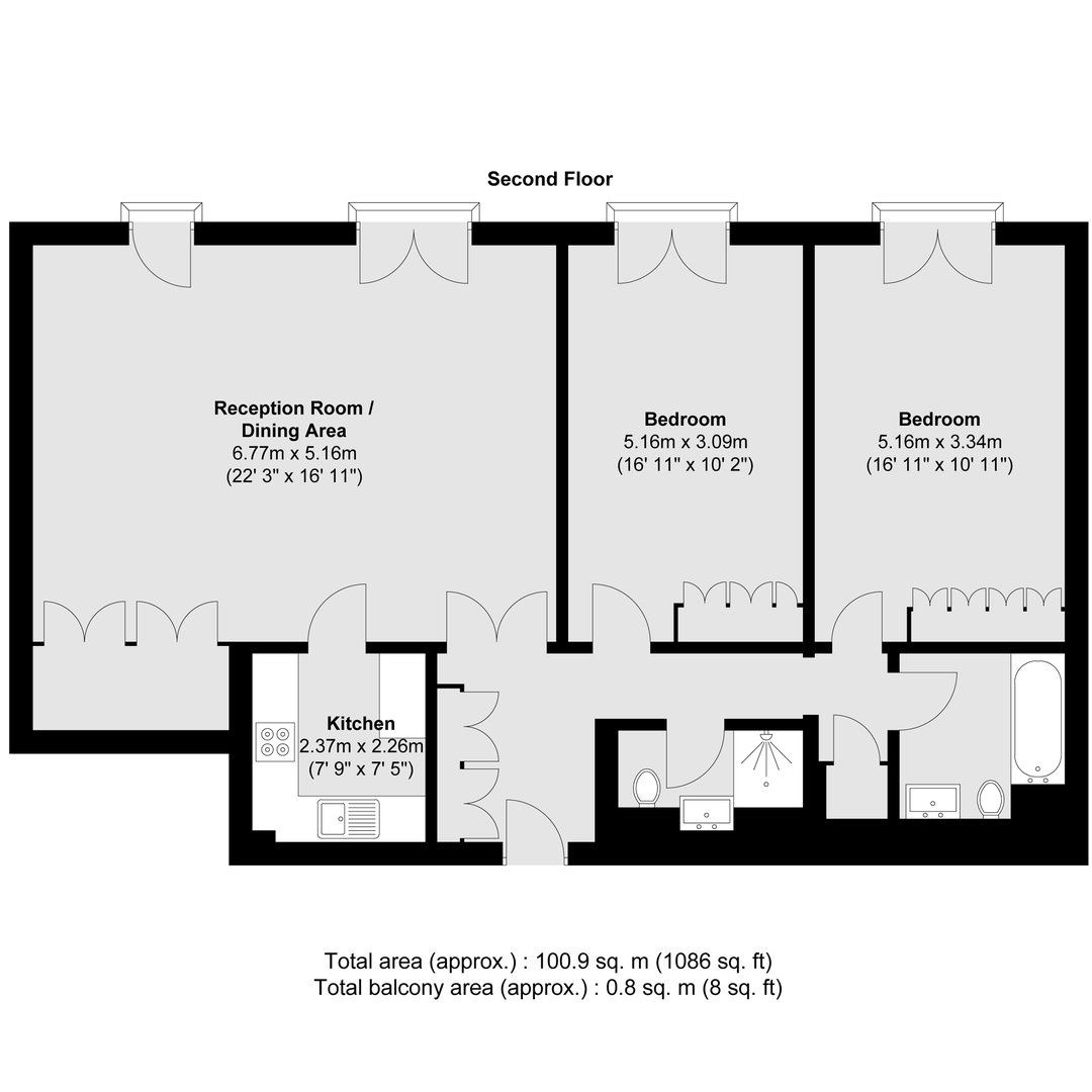 • Approx: 1086 Sq Ft