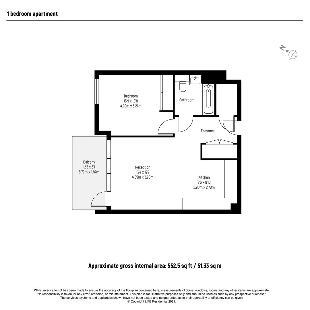 • One Bedroom / One Bathroom Size approx. 552 Sq. Ft.